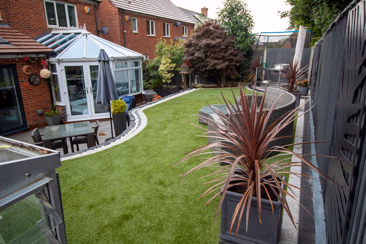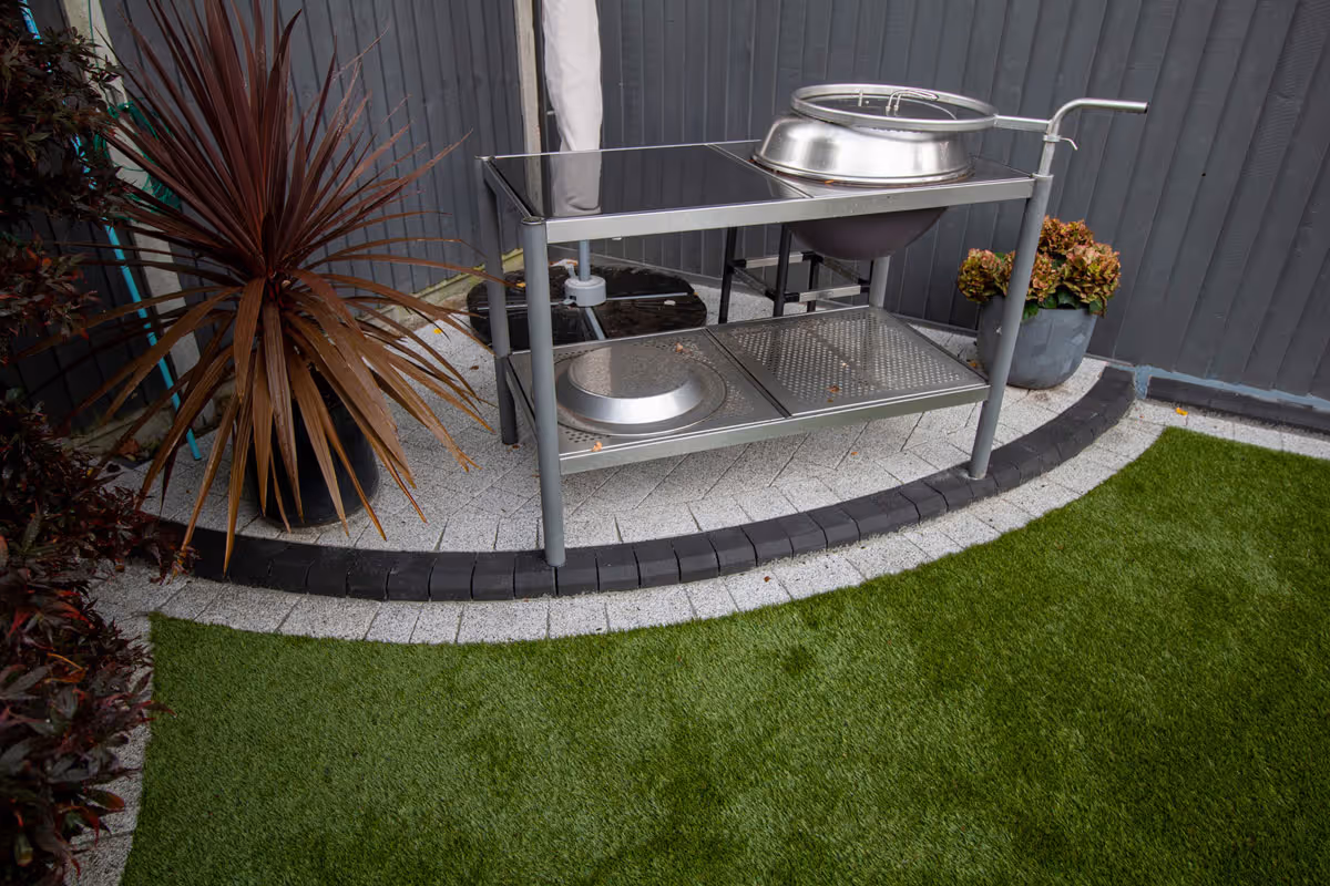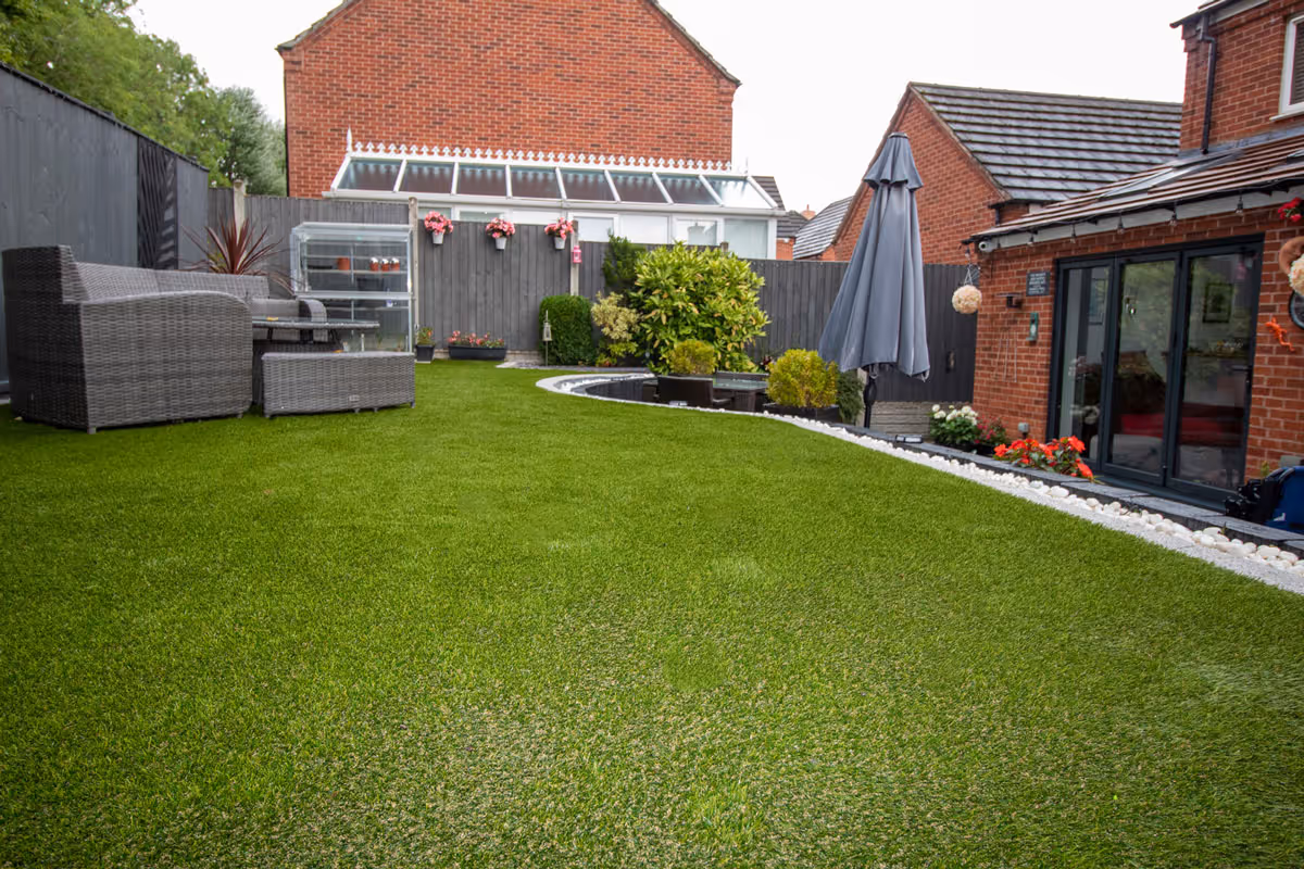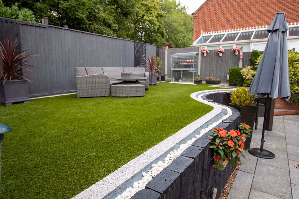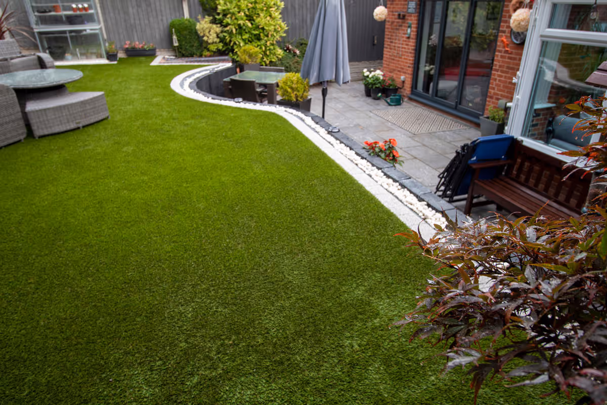 The Baker's required a low-maintenance, pet-friendly lawn on a raised level that would seamlessly integrate with her established garden. They turned to BB Landscapes for our expertise in artificial turf installations. We installed a 35mm Pile artificial turf, selected for its durability, resilience, and pet-friendly characteristics. The artificial turf provided a lush, green surface that was safe and comfortable for the Baker's dog to enjoy year-round. The lawn was completed with a resin-topped white block border edge.