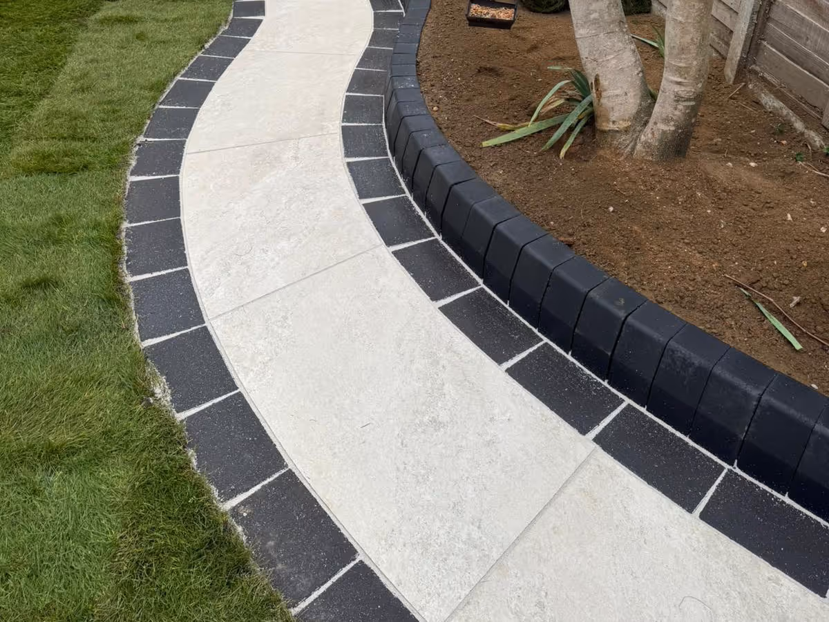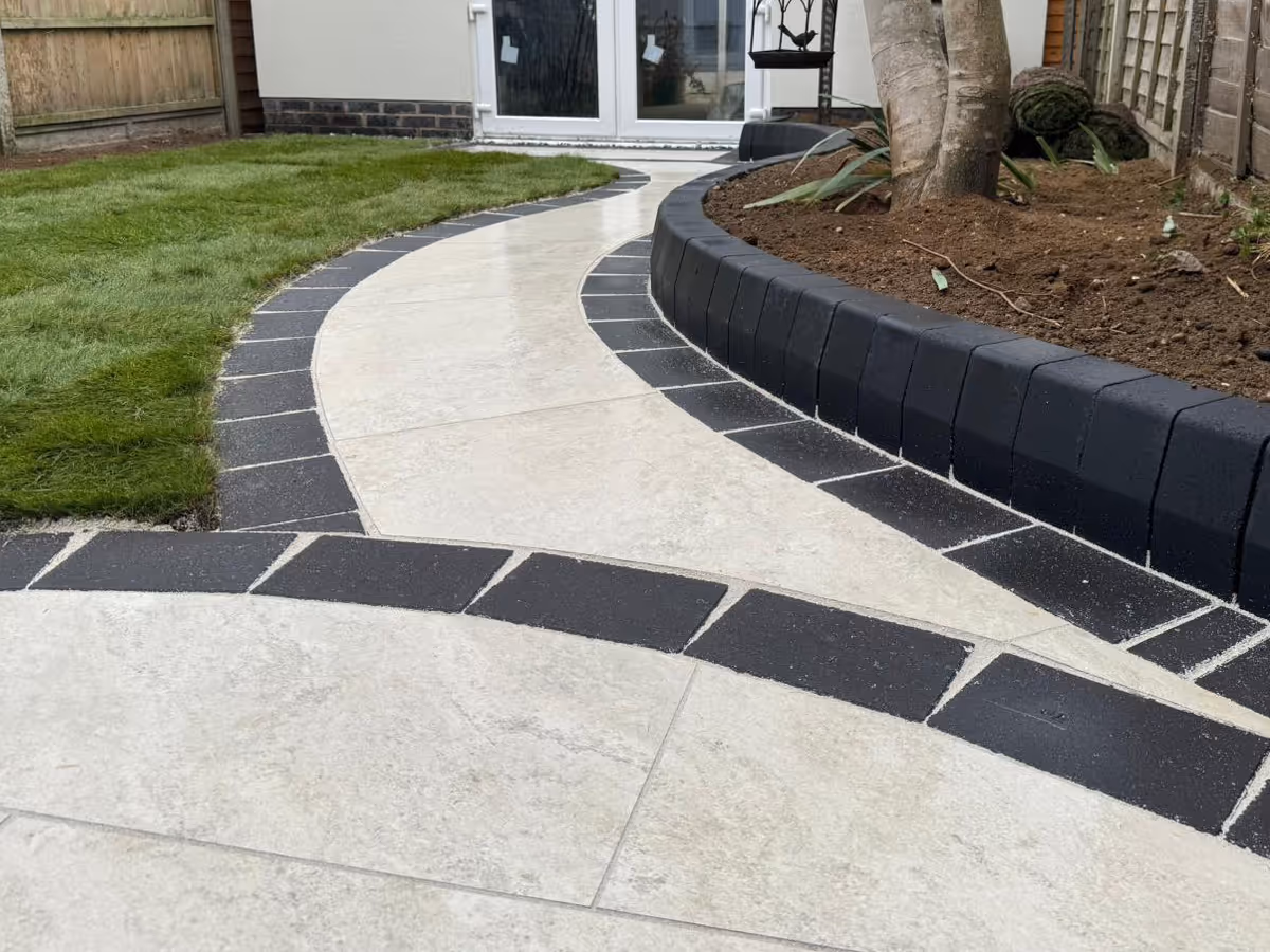 Total Stone Grigio porcelain patio with charcoal pencil edge paving